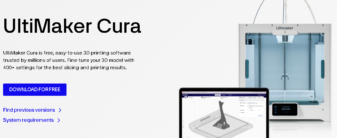 El CURA es un software gratuito que permite tomar un archivo 3D de extensión .STL y convertirlo en tipo de archivo .GCODE que interpreta la maquina. El software cuenta con muchos parámetros que afectan la impresión que algunos usuario con experiencia pueden modificar para optimizar sus impresiones. Sin embargo, el cura cuenta con un perfil de las maquinas de Trimaker para poder imprimir sin tener que configurar ningún parámetro. Comenzaremos por descargar e instalar el software: