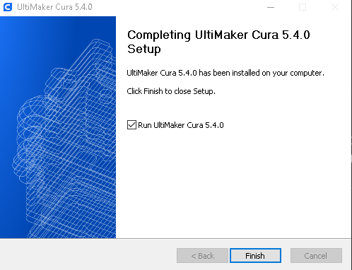 Esperamos que el software se instale y presionamos "Finish". Ya tendremos listo el software para generar los archivos GCODE.